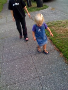 >This is actually a family joke:) One of our friends in Florida used to tell us this every time our oldest would begin walking backward around her house. We love you Betsy!!