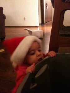 >Holiday Elf helping decorate
