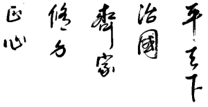 holy ground. Then he presented this image to us. Thankfully he did not have the English translation because he was able to share with us more context which made the word so much more than the translation expresses! It is a quote from Confucius which most people from China know very well, roughly translated it means, “To put the world in order we must first set our hearts to right thing, to then focus on craftsmanship, to then care for family and team, and then the world.” I have begin to read commentaries and other translations of this proverb and needless to say it is very profound.